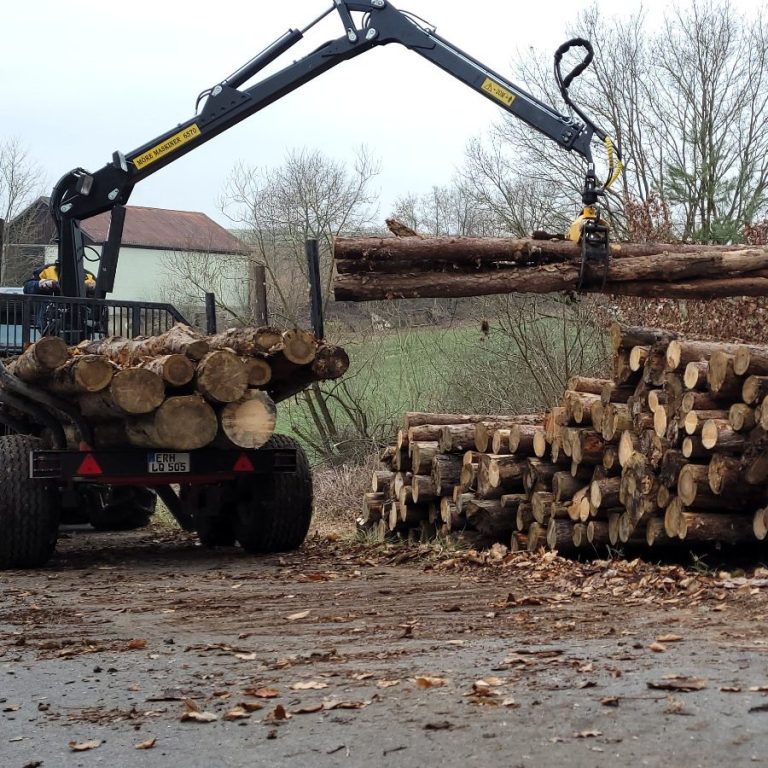 Mit dem 6,5 Meter Kran können wir auch an unwegsamen Stellen Ihr Holz auf- und abladen.
